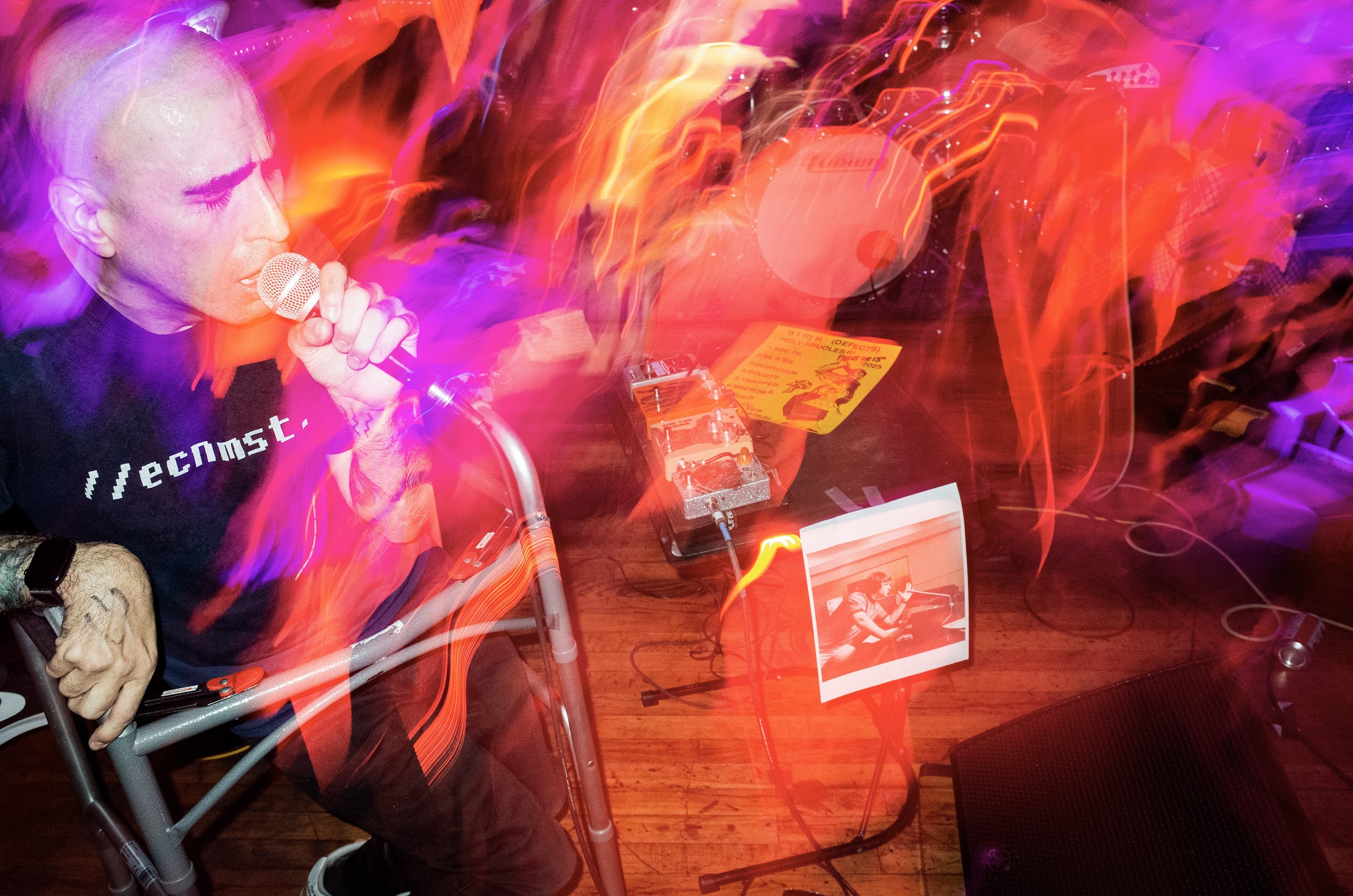 Because while the methodology for choosing the songs here is only hinted at, they very much have a fuck-you feel that I’d like to imagine befits a singer who has to work pedal boards and hold all 140 pounds of himself aloft for the better part of 30 minutes to get the job done at all. All while voicing songs from Sonic Youth (Sunday), The Comsat Angels (Postcard), Nirvana (I Hate Myself and Want to Die) and How Much Art (SSD) among other originals.